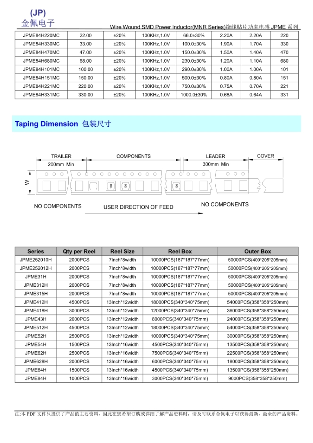 JPME系列封磁胶电感