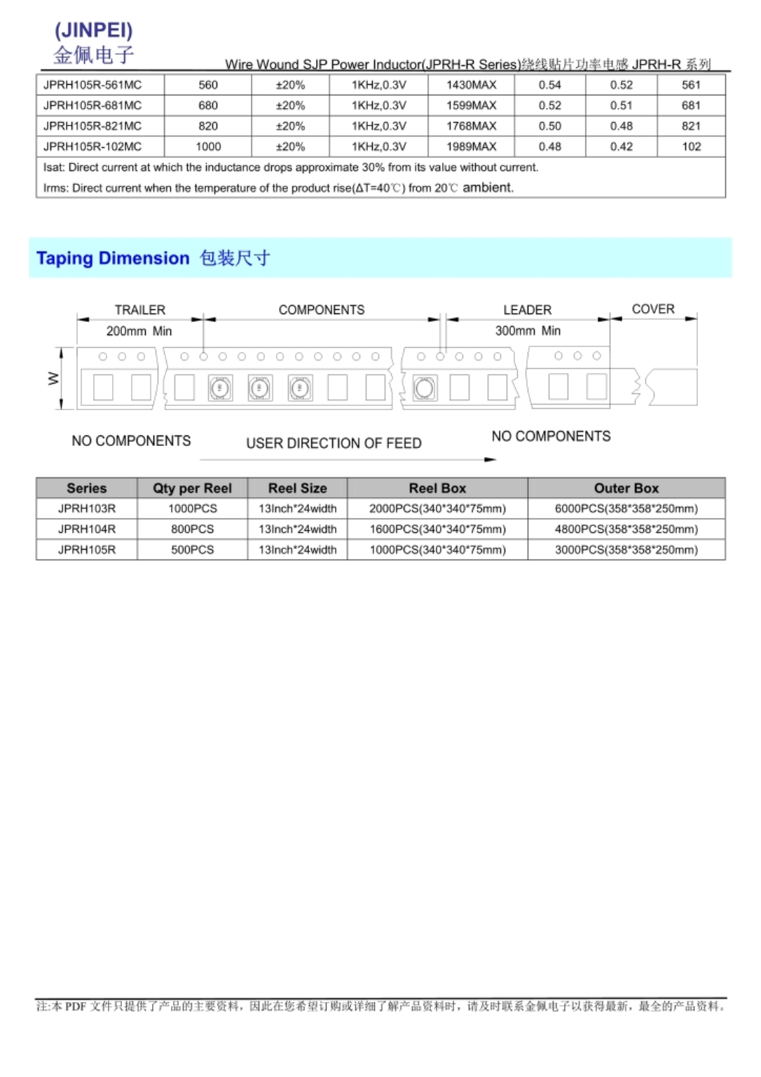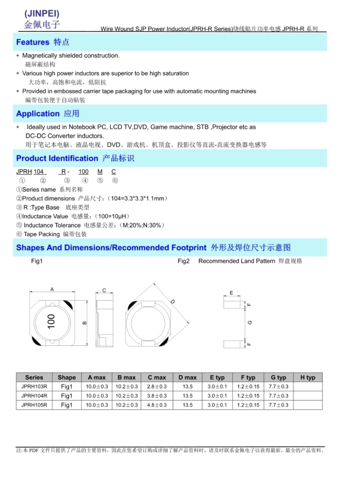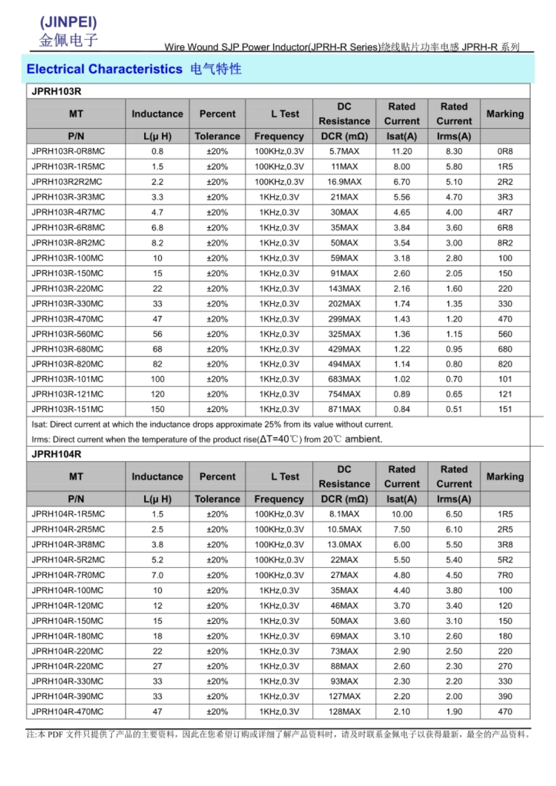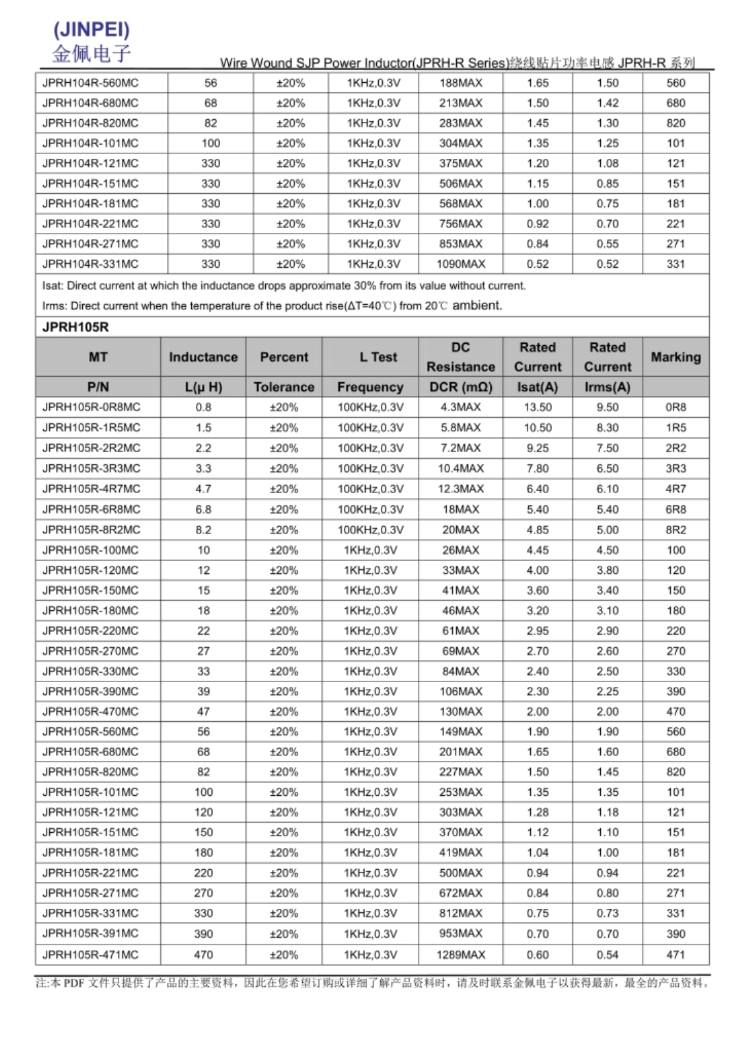 JPRH-R系列功率电感